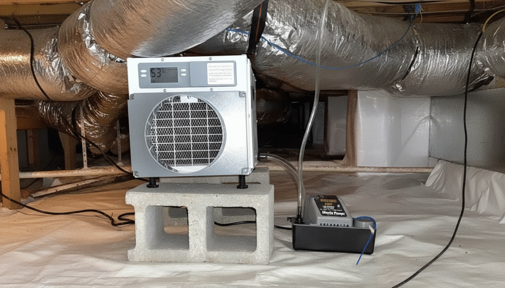 Automatic dehumidifiers remove leftover water trapped during installation. Units prevent condensation on new plastic barriers. You maintain dry conditions all year without manual adjustments.