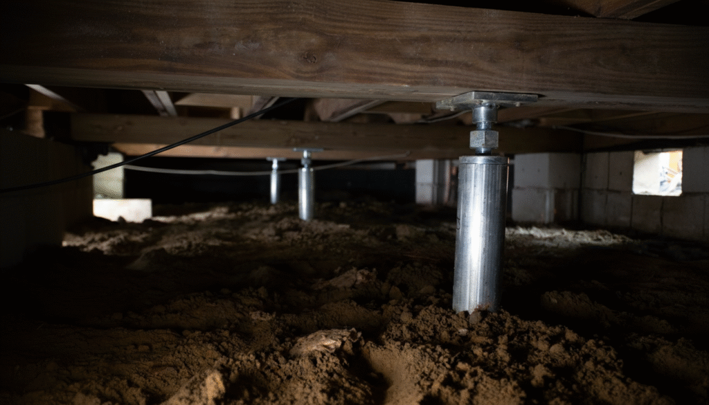 Excess movement in high-traffic areas places strain on wood floors and fasteners. Adjustable steel posts transfer weight to engineered footings, reducing bounce and restoring rigidity. This approach protects finishes and improves overall floor care by preventing recurring movement.